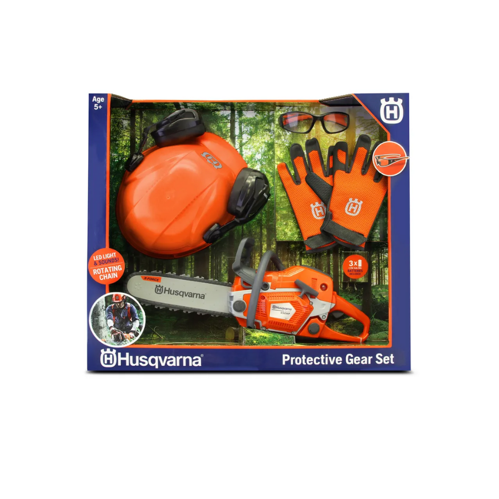 Husqvarna 550XP motorzāģa rotaļlieta ar bērnu aizsardzības aprīkojumu