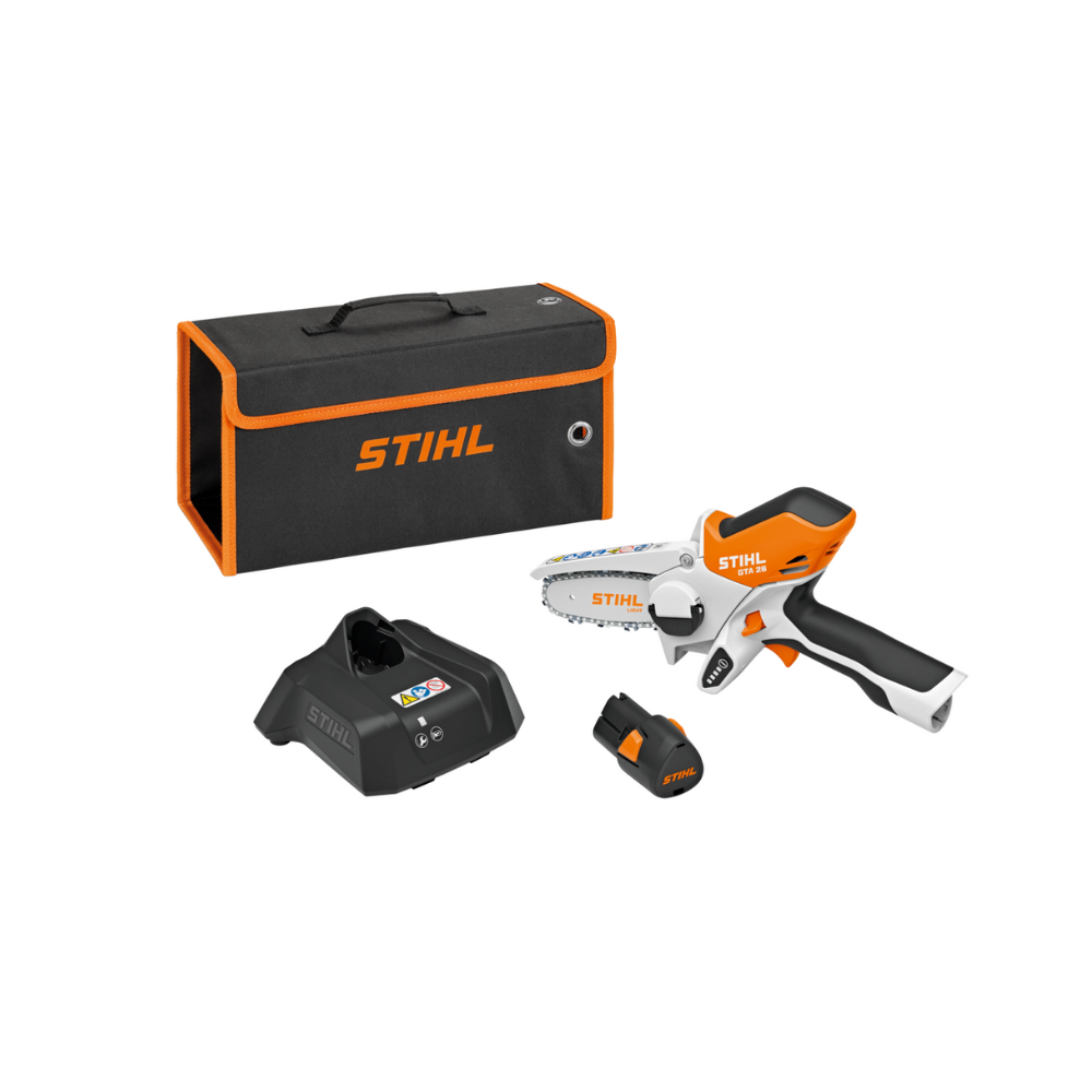 Universāls STIHL GTA26 zaru zāģis, komplektā ar akumulatoru un lādētāju.