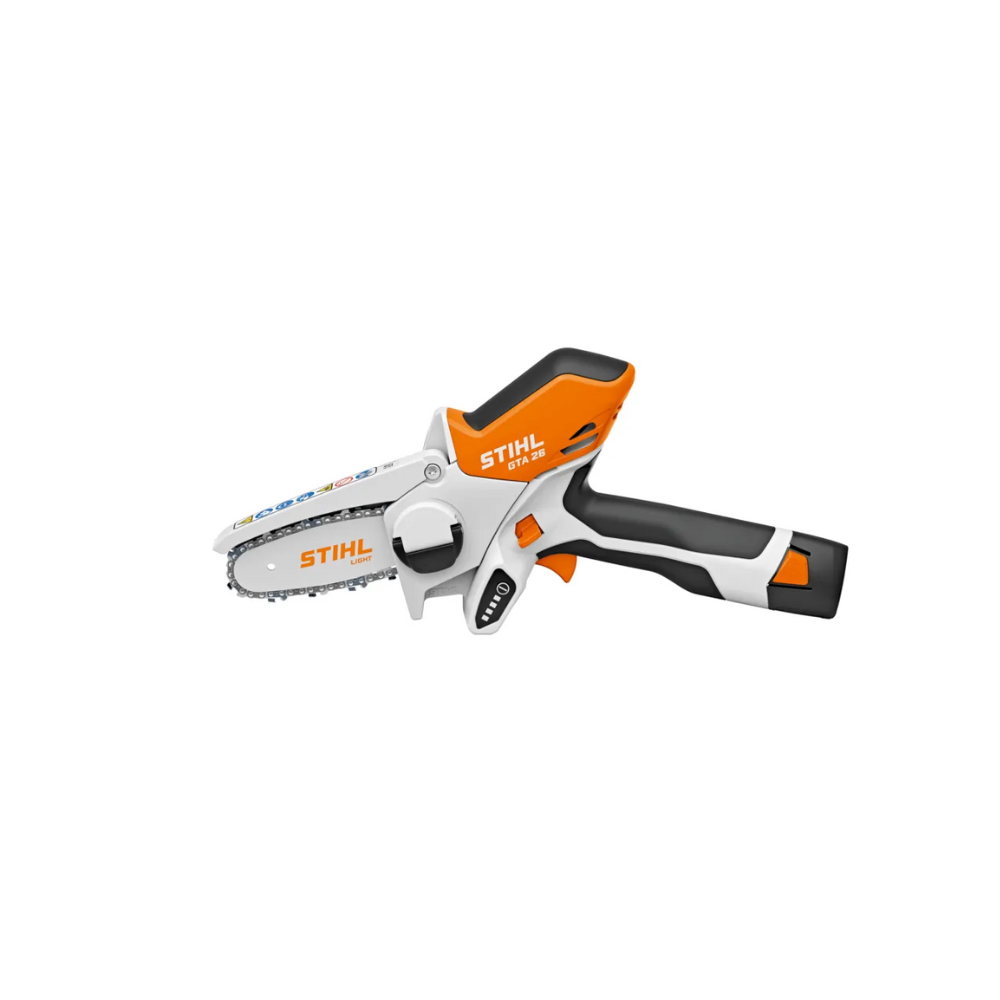 Ērts STIHL GTA 26 akumulatora zaru griezējs koku un krūmu apgriešanai, zaļo atkritumu sagraizīšanai un dažādiem celtniecības darbiem, kuros izmanto koksni. Ar 1/4″ PM3 ķēdi – efektīvai un jaudīgai griešanai. Ergonomisks, neslīdošs vadības rokturis ērtam darbam. Ķēdes nomaiņa bez instrumentiem un elastīgs aizsargvāciņš. Zaru griezējs ir aprīkots ar uzlādes stāvokļa indikatoru.
