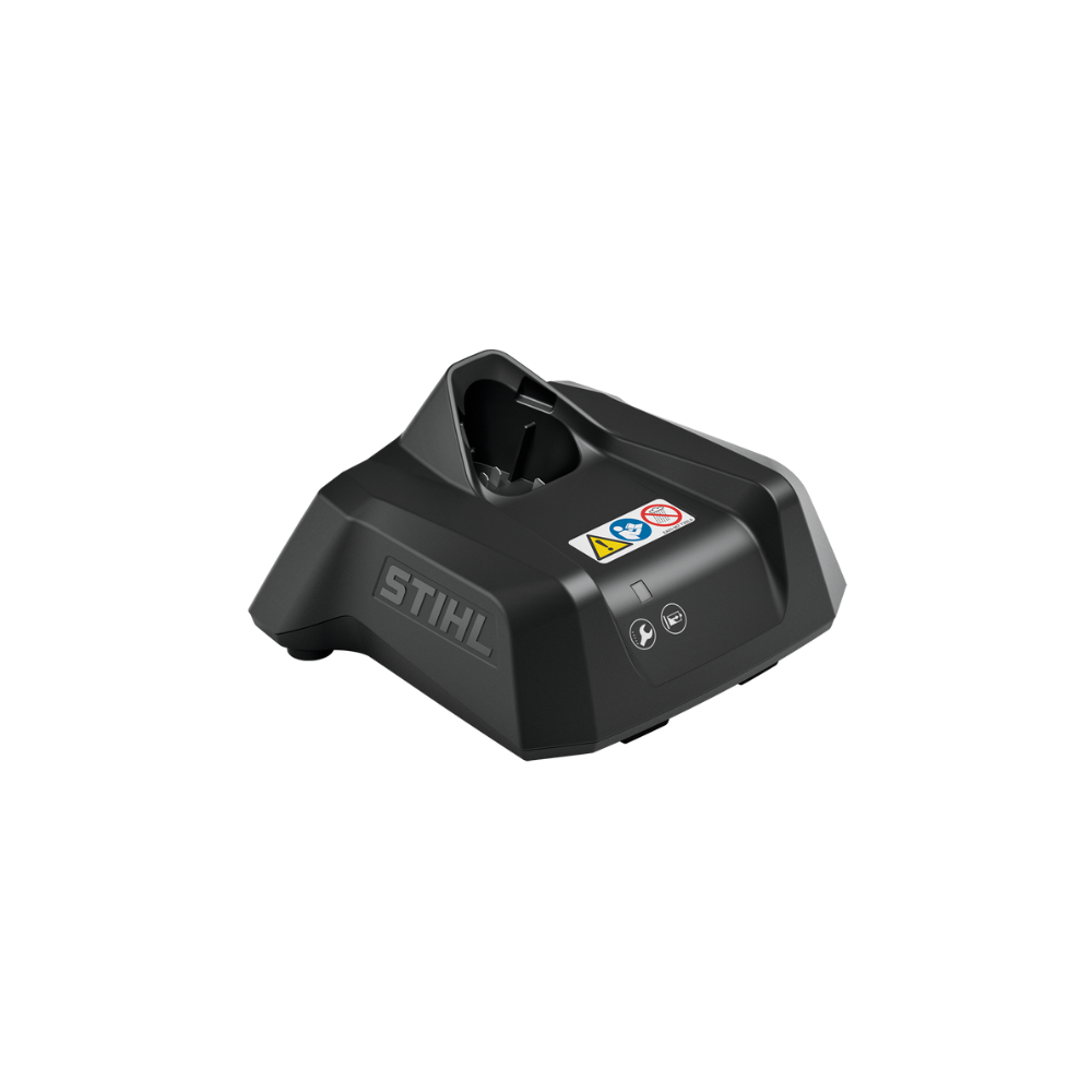 STIHL AL 1 lādētājs, kas saderīgs ar STIHL AS 2 akumulatoru. Ar darbības stāvokļa displeju (LED gaisma). Var piestiprināt pie sienas.