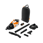 Praktisks un ērti lietojams STIHL SEA 20 akumulatora rokas putekļsūcējs. STIHL SEA 20 rokas putekļsūcējs darbojas ar AS sistēmas litija jonu akumulatoruAS 2. Jaudīgais STIHL 10 V rokas putekļsūcējs ir viegls un ergonomisks. Mīkstais rokturis un ērta iedarbināšana kreiļiem un labročiem nodrošina ērtu darbu. Bloķēšanas poga ļauj nepārtraukti strādāt bez palaišanas slēdža pastāvīgas turēšanas nospiestā stāvoklī. Tieši uz sūkšanas uzgaļa uzstādītais elastīgais pretvārsts droši aiztur iesūktos netīrumus savākšanas tvertnē. Putekļu tvertnes iztukšošanu un tīrīšanu var viegli un ērti veikt ar vienu kustību. Divpakāpju filtrēšanas sistēma ļoti labi aiztur putekļus, un to var viegli iztīrīt un atkārtoti izmantot. STIHL SEA 20 rokas putekļsūcēja komplektā iekļauts liels praktisku piederumu klāsts: šaurs uzgalis, uzgalis rupjiem netīrumiem, sūkšanas šļūtene, pagarināšanas caurule, papīra filtrs un filtra grozs. STIHL akumulatora rokas putekļsūcēju SEA 20 var ievietot somiņā ar pakarināšanas cilpu.