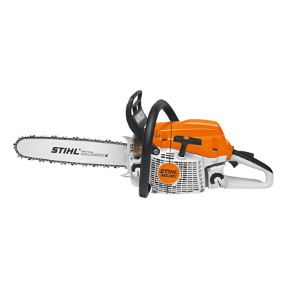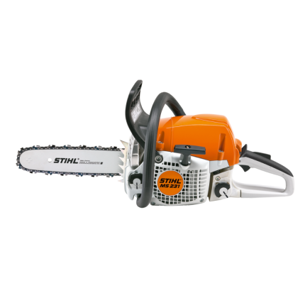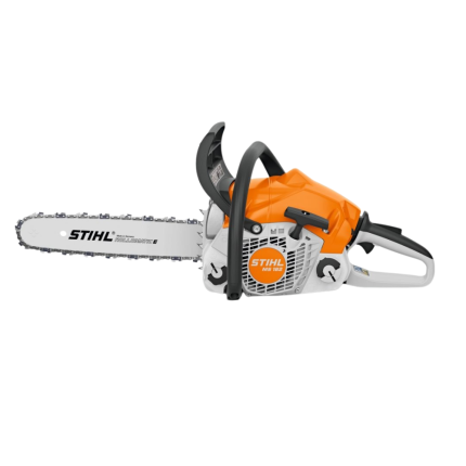 Jaudīgs benzīna motorzāģis malkas zāģēšanai un teritorijas kopšanai.